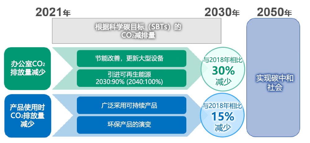 TOTO集團正在努力從長遠(yuǎn)角度出發(fā)減少二氧化碳的排放,旨在實現(xiàn)一個脫碳社會。為了減少其商業(yè)據(jù)點的二氧化碳排放,TOTO將在節(jié)能方面進(jìn)行改進(jìn),升級大型設(shè)備,并擴大引進(jìn)可再生能源,力爭到2040年100%使用可再生能源電力(RE100*2成員)。為了減少產(chǎn)品使用時的二氧化碳排放,TOTO將在其產(chǎn)品的環(huán)??冃Х矫嫒〉眠M(jìn)一步的進(jìn)展,并在全球范圍內(nèi)推廣其“可持續(xù)產(chǎn)品”系列,即兼顧清潔、舒適和保護(hù)環(huán)境的獨特衛(wèi)浴產(chǎn)品。這樣一來,TOTO將幫助建立一個豐富舒適的社會,對全球化環(huán)境更有利。