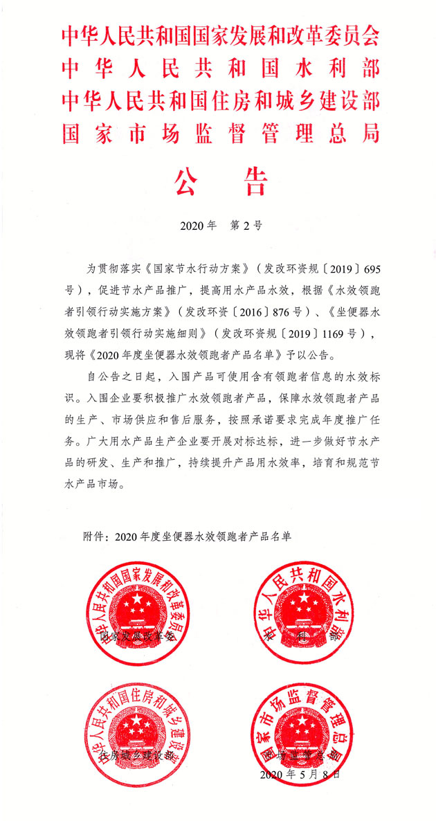 近日,國家發展改革委、水利部、住房城鄉建設部、市場監管總局聯合發布了《2020年度坐便器水效領跑者產品名單》公告,TOTO多款坐便器從眾多參與評選產品中脫穎而出,榮獲“坐便器水效領跑者”稱號。TOTO也是本次評選中,唯一單沖式、雙沖式產品均入選的國際衛浴品牌。本次坐便器水效領跑者名單,由國家四部委聯合發布,其權威性和指導性顯而易見。對于入選品牌來說,“坐便器水效領跑者”稱號的獲得,即是強大衛浴技術的展示,也是品牌綜合實力的體現。
