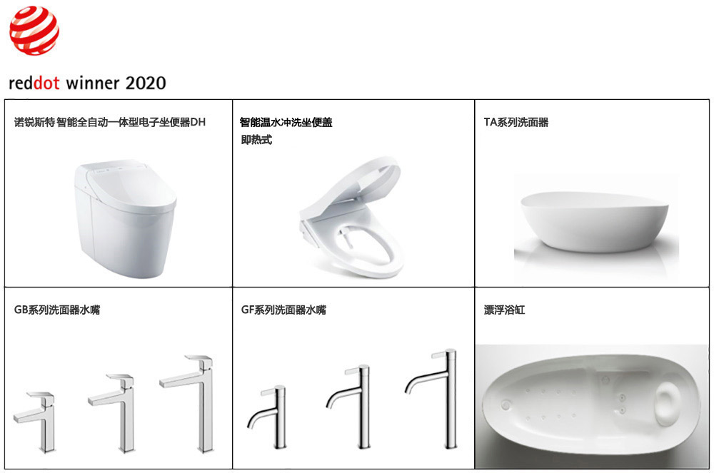 日前,2020年紅點設計大獎揭曉。TOTO旗下包括諾銳斯特 智能全自動一體型電子坐便器DH和TA系列洗面器在內的六款產品榮膺殊榮。