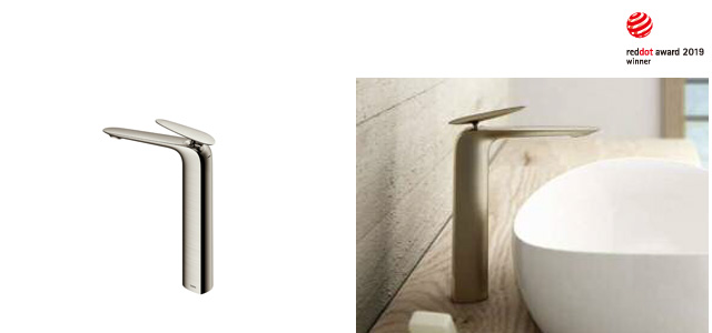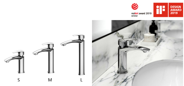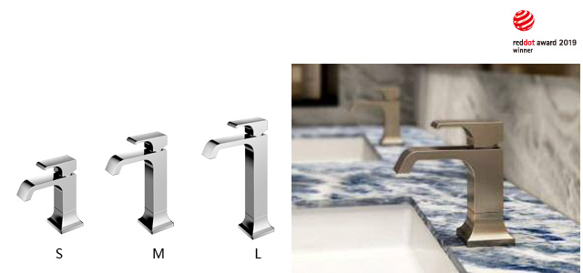 核心設計理念是“Edge(刀刃)”,靈感源自于傳統(tǒng)工藝品。V字形表面一直連接至出水口的最前端,著重強調(diào)金屬所具有的緊迫感和美感。根據(jù)觀看角度的不同,其外形也會產(chǎn)生非常豐富的變化,營造出華麗的空間。此外還有3種不同高度(S/M/L)以及多種不同顏色可供選擇。