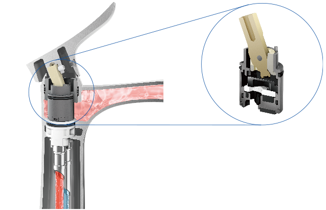 TOTO認為舒適不僅僅是環境舒適,持久易用也是舒適感的一部分。基于這一目的,TOTO為用戶設置了獨特的閥芯。本設計從根本上為簡化操作提供了基礎。