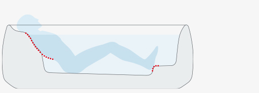 置身舒適之中,放松身心,進入舒緩的寧靜狀態。當您橫躺,將頭部放置于頭枕上時,您將擁有被包裹般的舒適感受。整個身體從頸部到背部始終保持自然的s曲線,讓您盡情放松。保持這樣的仰浴姿勢,可以帶來更深層的舒適與享受。臺階設計 能讓身材矮小的人群更加穩定安全地進入到浴缸中。 可以實現面對面的親子入浴。扶手設計扶手角度的設計經過了深入研究,能幫助從仰面朝上的入浴姿勢自然起身,握住站起時手腕、前臂都不需要非常過度的彎曲。