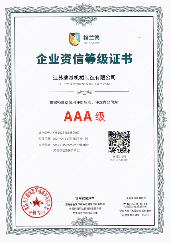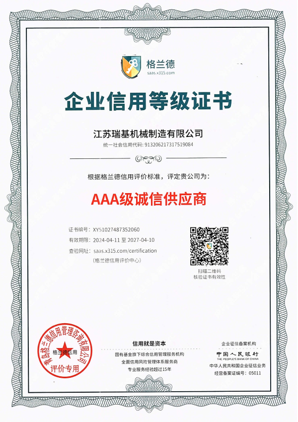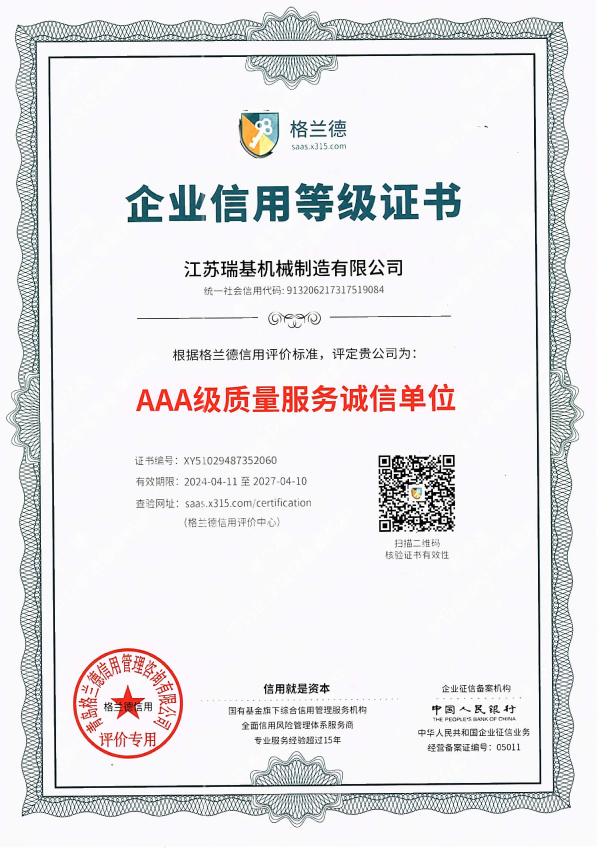 江蘇瑞基機械制造有限公司本著“質(zhì)量為本,信譽至上”的宗旨,以“銳意進取,開拓創(chuàng)新”的企業(yè)精神,摯誠敬業(yè)的服務(wù),為用戶提供更多產(chǎn)品及服務(wù)。